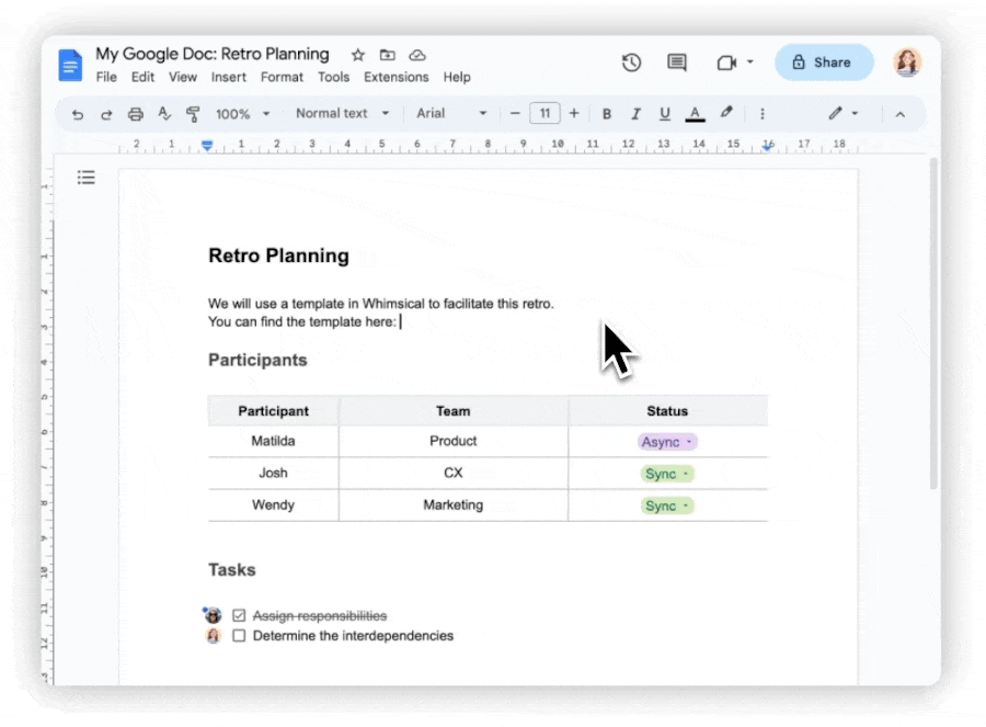 With our Google Docs integration, you can create new Whimsical files directly in your Google Doc.