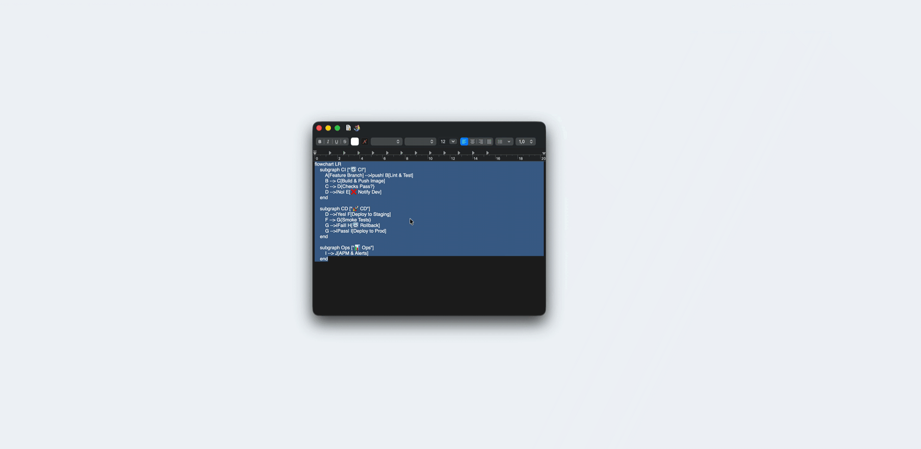 Mermaid is a text-based diagramming syntax that lets you describe flowcharts and sequence diagrams in code.