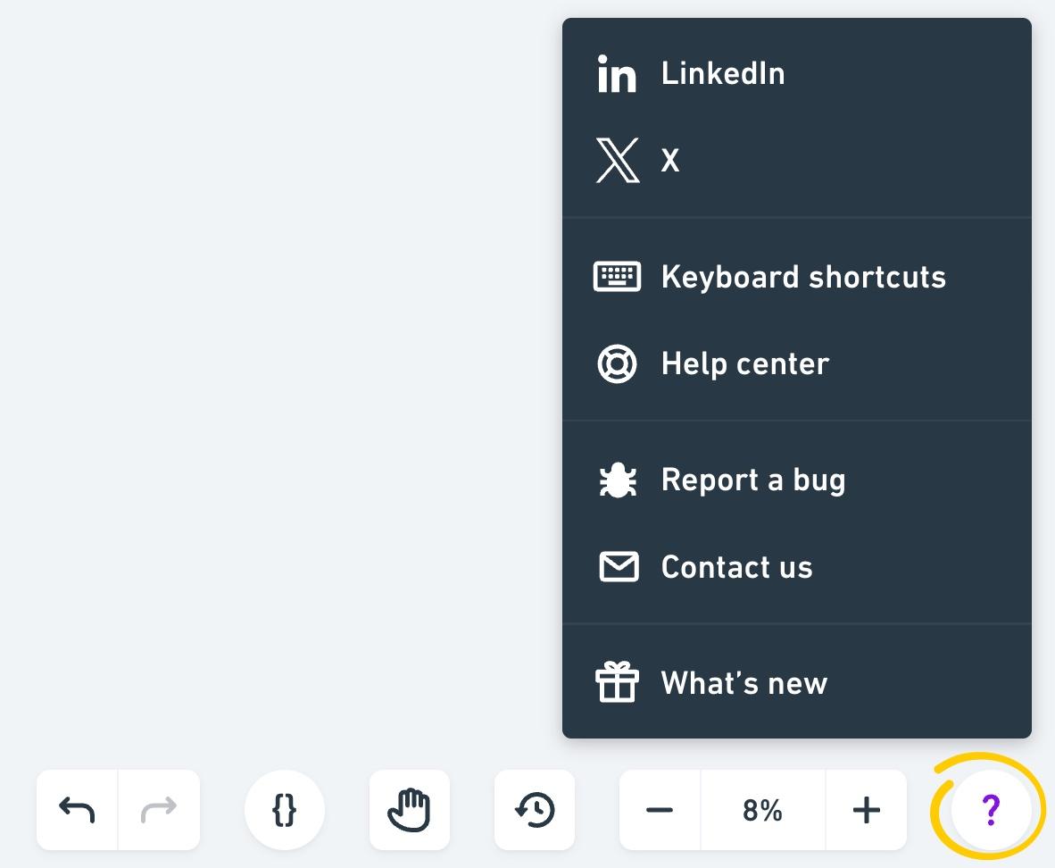 As always, when you're working in a board you'll have the help menu in the bottom right corner where you'll find links to: