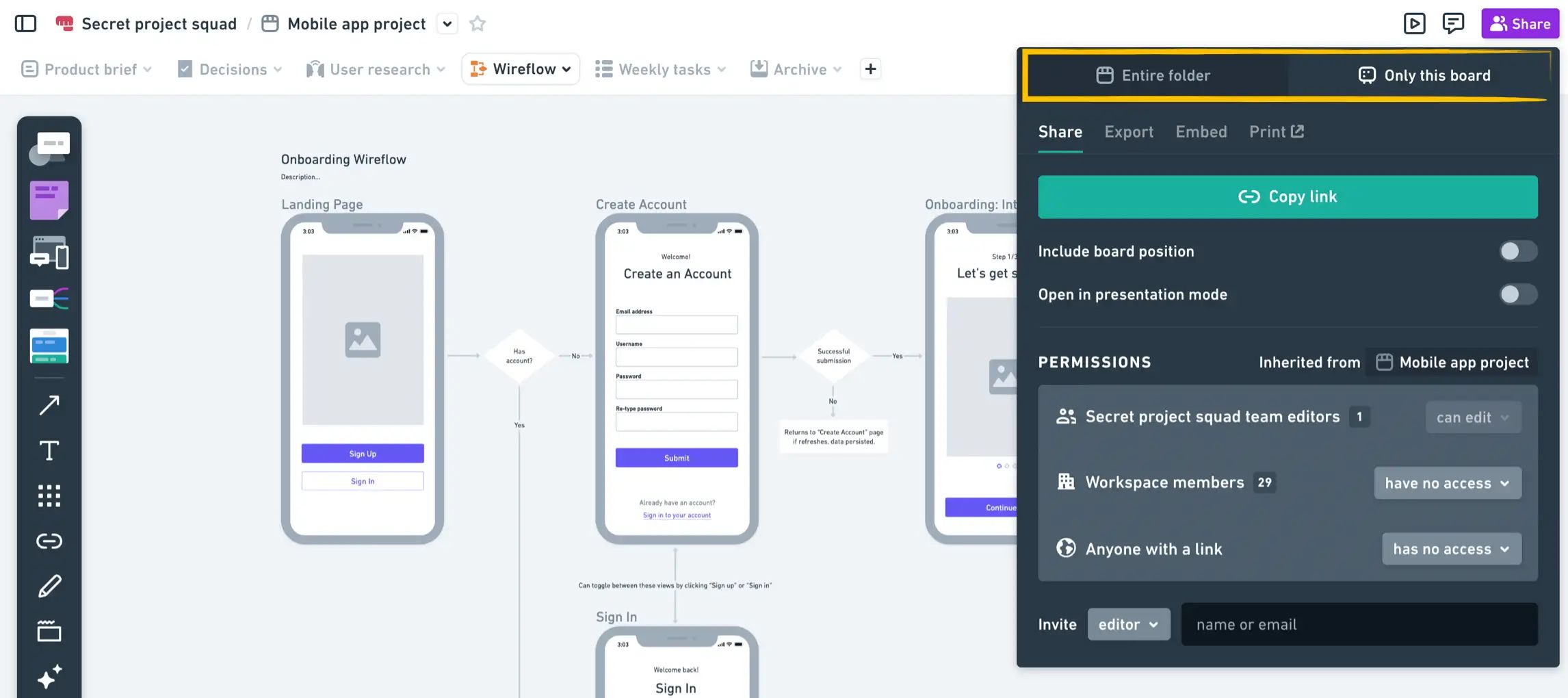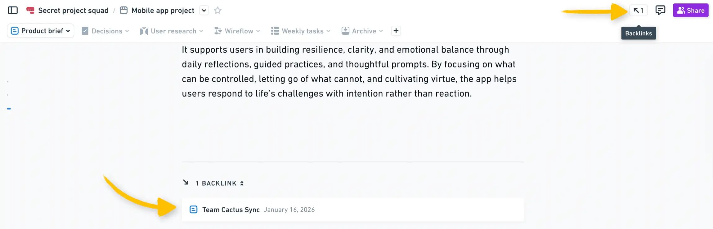Tabbed folders give you a clean, organized view of your team’s work. They keep your docs and boards in context and are perfect for project-based collaboration.